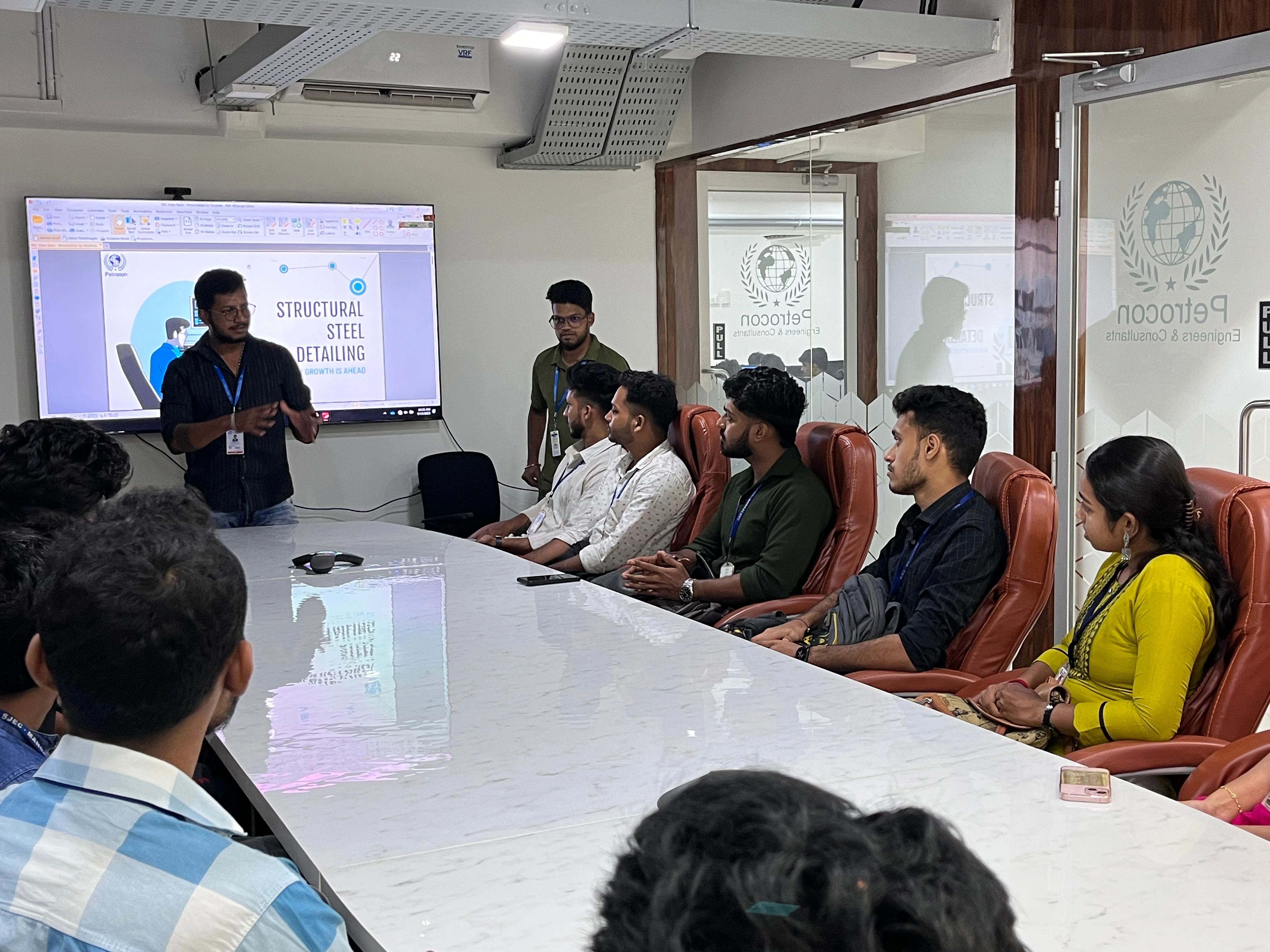 At Petrocon Engineers & Consultants, we believe that true engineering education begins when classroom concepts meet real-world applications. Recently, we had the pleasure of welcoming students from St. Joseph Engineering College to our Petrocon office for a Beginner-Level Tekla Awareness Session.
