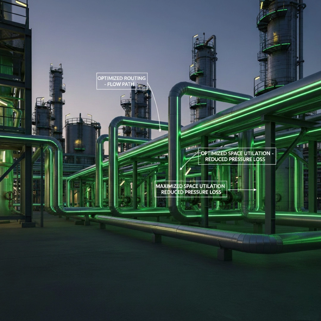 We design piping paths that ensure efficient flow, reduce pressure loss, and maximize equipment and space usage within complex plant environments.